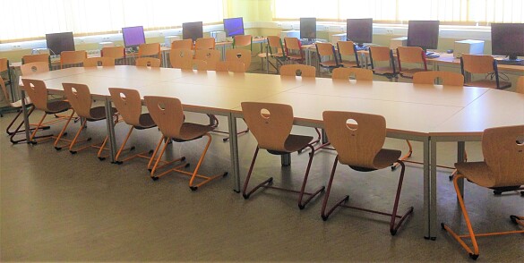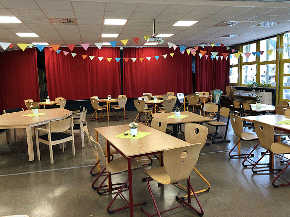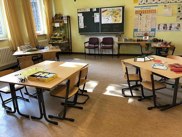 Welche Grundschule hat das schon: eine große Bücherei auch mit vielen mehrsprachigen Büchern, ein Atelier mit Werkbänken und Kunstbereich, einen Musikraum, einen Theaterraum mit Bühne, der auch gleichzeitig Aula für Schulveranstaltungen, Betreuungsraum und Mensa ist und einen PC-Raum.